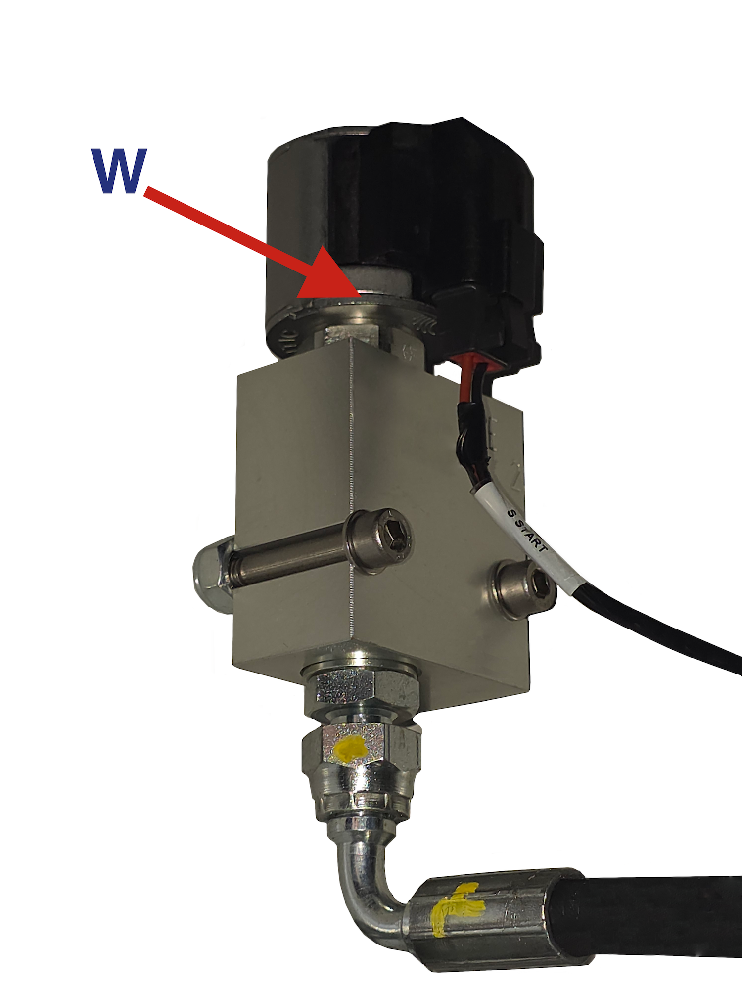 (NB: Solenoid valve ‘F’ sits on outlet port block of yellow hydraulic pump.)